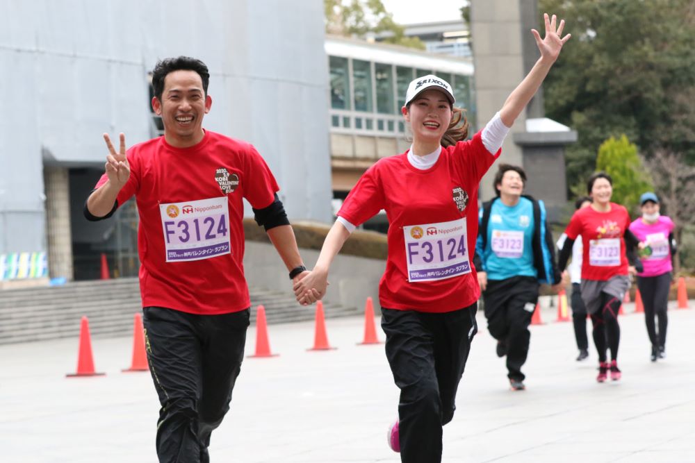 『手をつないでゴールする』というルールの愛と体力が試されるペアマラソンを完走した瞬間だそうです。